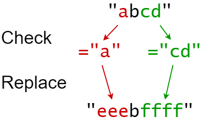 To some string S, we will perform some replacement operations that replace groups of letters with new ones (not necessarily the same size).