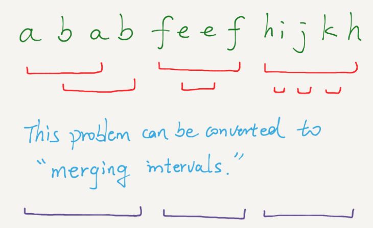 The partition is "ababcbaca", "defegde", "hijhklij".